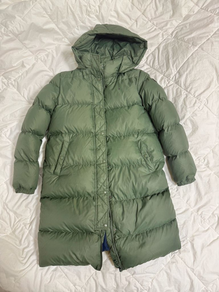타미힐피거 키즈 160사이즈 정도 입니다 넉넉 카키색상 롱기장 패딩