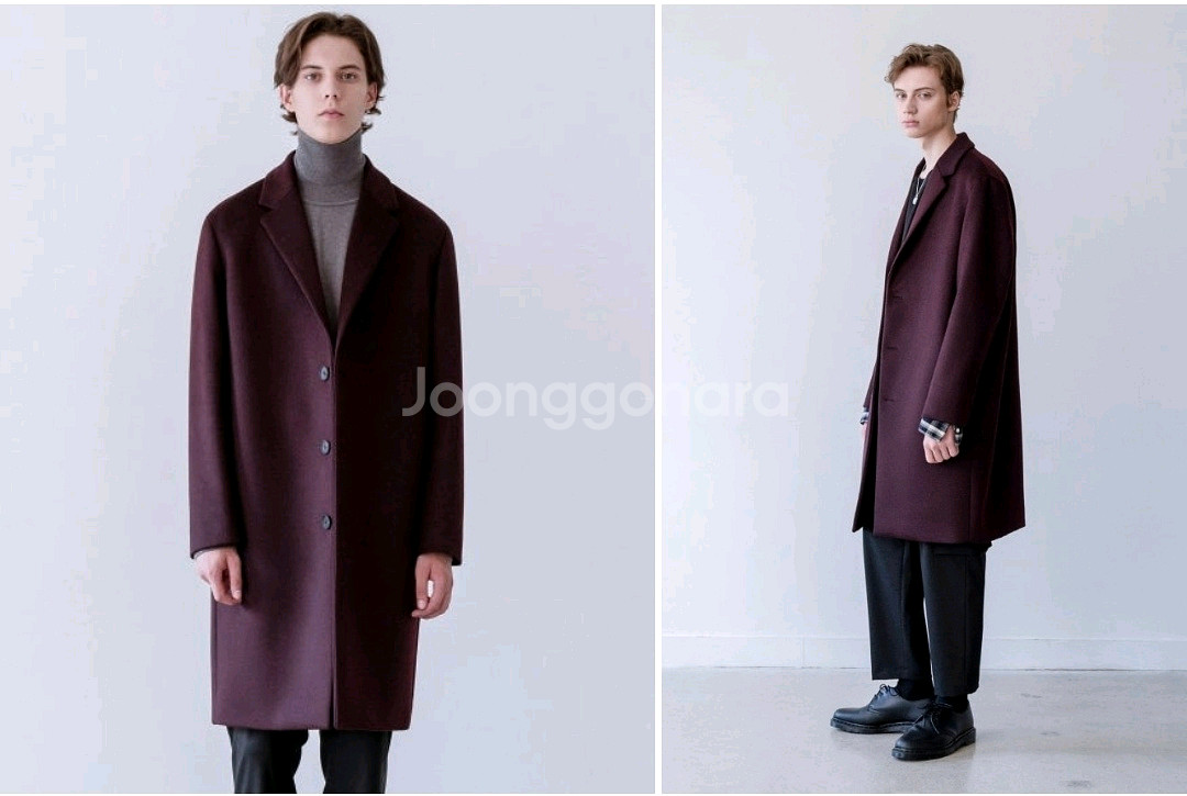 IN SILENCE 남성 코트입니다 버건디 색상으로 고급스러운 느낌을 줍니다 부드러운 소재로 제작되어 착용감이 좋습니다 구매시에는 20만원 주고 구매하였는데 1회 착용후 잘 보관하여 상태 좋습니다 사이즈는 사진 참고해주시면 됩니다 환불,반품,교환×××