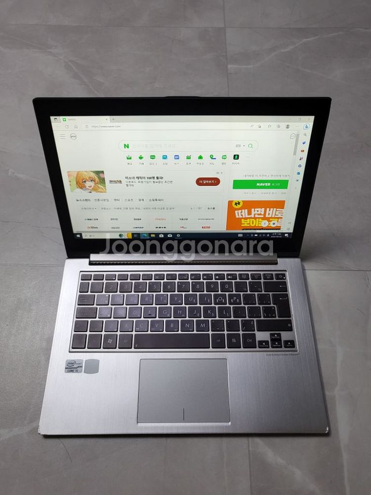 ASUS 13.3인치 풀HD 슬림노트북 13.3인치 얇은 노트북입니다. 외관도 고급 알류미늄으로 되있어요. 알만한 사람은 다 선호했던 고급 노트북 입니다. 키보드도 LED조명이 들어오는 발광키보드. 출고시 비쌌던 노트북입니다. 성능좋은 저전력 i5 3317U 탑재 *램-4기가 .SSD-128기가장착으로 부팅및 속도 잘 나옵니다. 10초부팅 가능합니다. USB3.0단자 있어요. 그래픽은 인텔HD그래픽 입니다. 웹캠 장착되어있고 고감도 무선랜 탑재되어있습니다. 생활기스는있지만 액정및 외관상태 좋아요.(실사확인) 터치패드가 잘 않돼 USB키보드 동봉합니다. 액정상태 좋아요. 밧데리는 완충시 3시간 정도부터 시작합니다. 윈도우10깔려있고 한글.오피스및 *기본프로그램 설치. *바로 사용하시면 됩니다. 노트북.어댑터 발송됩니다.