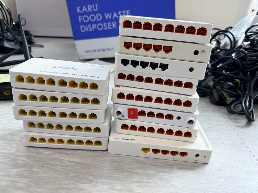 8포트 공유기 판매합니다. 사용감은 있지만 정상 작동하는 제품들로 케이블도 함께 드려요. 네트워크 확장이나 교체용으로 좋습니다. 13대 다 가져가실분 일괄 판매만됩니다 택배가능⭕️ 구매자부담