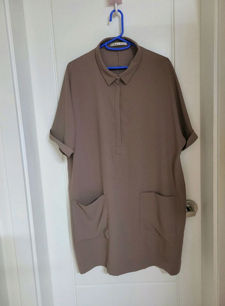 여성)빅 소매 카브라 셔츠형 미니원피스 커피브라운색상 사이즈:77~88사이즈 빅사이즈입니다. (가슴둘레단면60cm 길이88cm) 소매카브라및 주머니포인트. 오염및색바램없는상태입니다. 관심있으시면문의주세요. 택포가격입니다