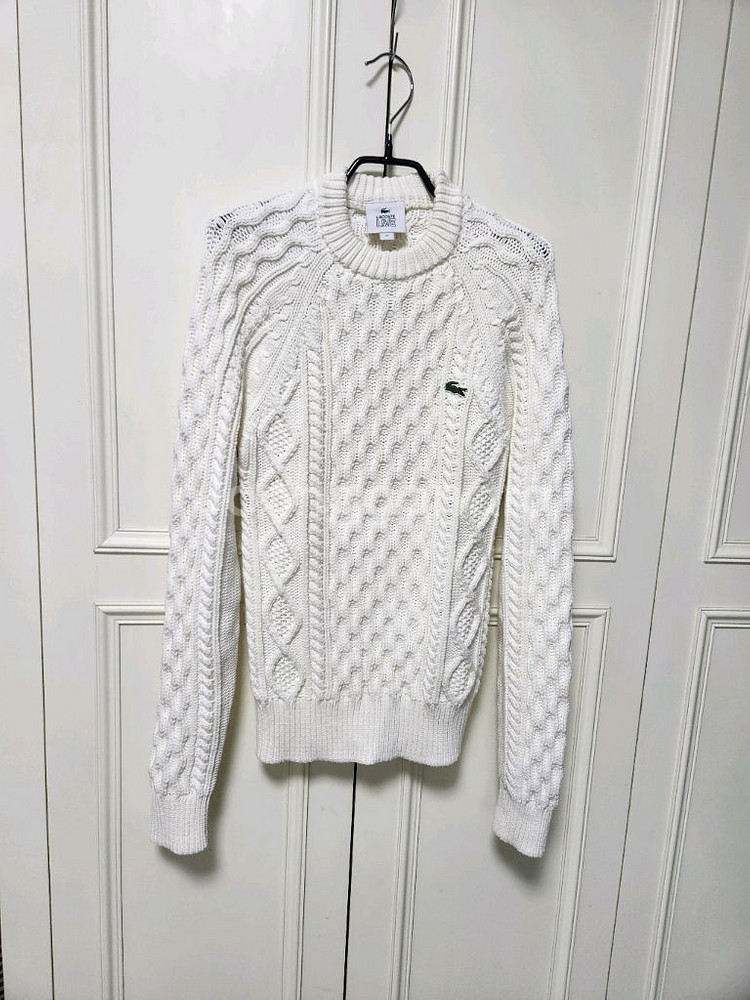 사이즈 - XS(90) 구입가 - 239,000원 도톰한 코튼 혼방 원단으로 제작한 스웨터입니다. 래글런 소매와 톤온톤 골지 마감이 라코스테만의 고급진 느낌을 주고 케이블 짜임은 공기층을 여러겹으로 막아줘 추운날에도 멋진 스타일링이 가능하며 깔끔하면서도 데일리로 착용이 가능합니다. 아래에 실측사이즈 참고해주세요. 실측사이즈(단면/cm) - 가슴44 총장63 (재는방식에 따라 약간의 오차가 있을수 있습니다) ✅️ 구매 전 확인해주세요 - 중고거래 특성상 단순변심/미세한 사이즈오차 사이즈미스로 인한 교환 및 환불은 안되니 신중히 구매 부탁드립니다. - 결제된 상품은 우체국택배를 통해 배송되며, 평일 오후 3시 이전 주문건은 당일 발송 됩니다. - 구매외 질문,에눌 및 요구사항 바로 차단합니다.