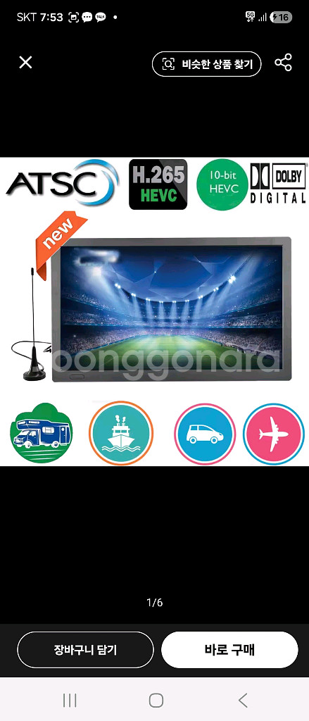 충전식 휴대용 미니 디지털 TV 지지대 DVB-T2, ISDBT ATSC Hevc H265, 10 비트 코드 15.4인치 TV입니다 - USB, HDMI, AV 입력 지원 - 리모컨, 안테나, 케이블 포함 새상품입니다 대신 박스 없는점 참고바랍니다