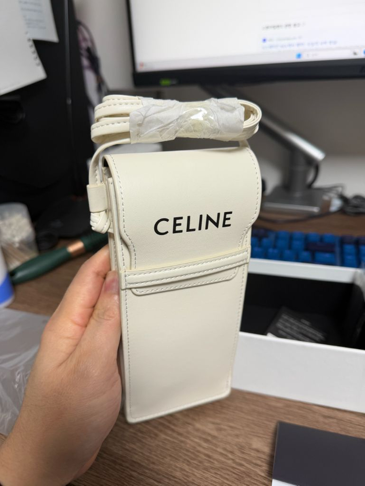 정품 아이보리 컬러 크로스백이에요. 새상품 상태로 포장지까지 그대로 있어서 완전 깨끗합니다. 데일리용으로 딱 좋은 사이즈예요! 셀린느 크로스 백도 가능하고 선그라스 케이스 입니다 새상품이고 그대로 쓰시면 됩니다 아이보리 색상 2월 중순 구매 상품