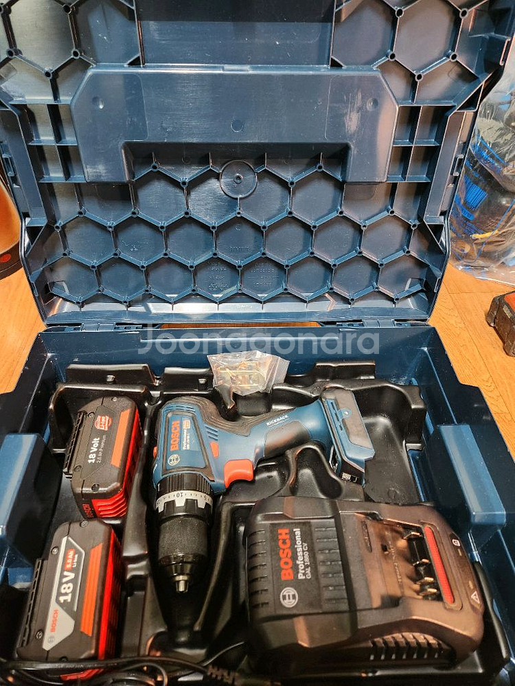 보쉬 GSB 18V-90 C 전문가용 드릴 드라이버 세트입니다 - 18V 배터리 2개 (5.0Ah, 2.6Ah)와 충전기, 케이스 포함입니다 - 킥백 컨트롤 기능으로 작업 안전성을 높였습니다 - 콤팩트한 디자인으로 좁은 공간에서도 작업이 용이합니다 - 내구성이 뛰어나고 강력한 성능을 자랑합니다 - 미사용 제품이며 상태 A급입니다