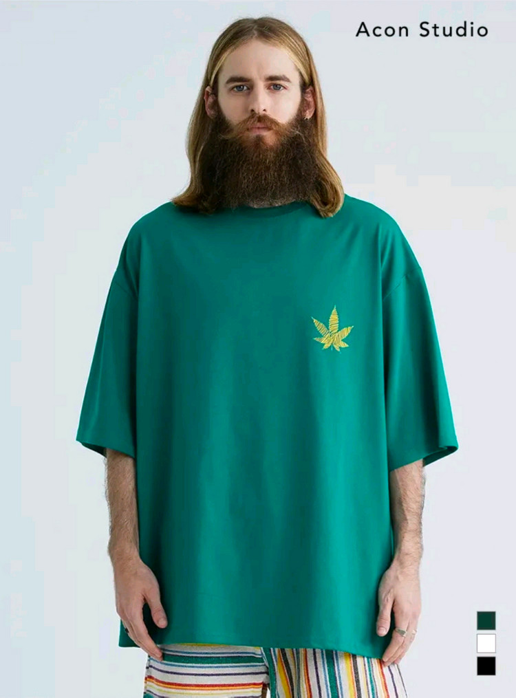 옷정보와 피팅 실물은 전부 사진에 첨부했습니다. 아콘 스튜디오 마리화나 박스 티셔츠입니다. 넉넉한 박스핏으로 편하게 입으실 수 있습니다. 에메랄드 색상에 마리화나 자수가 포인트입니다.