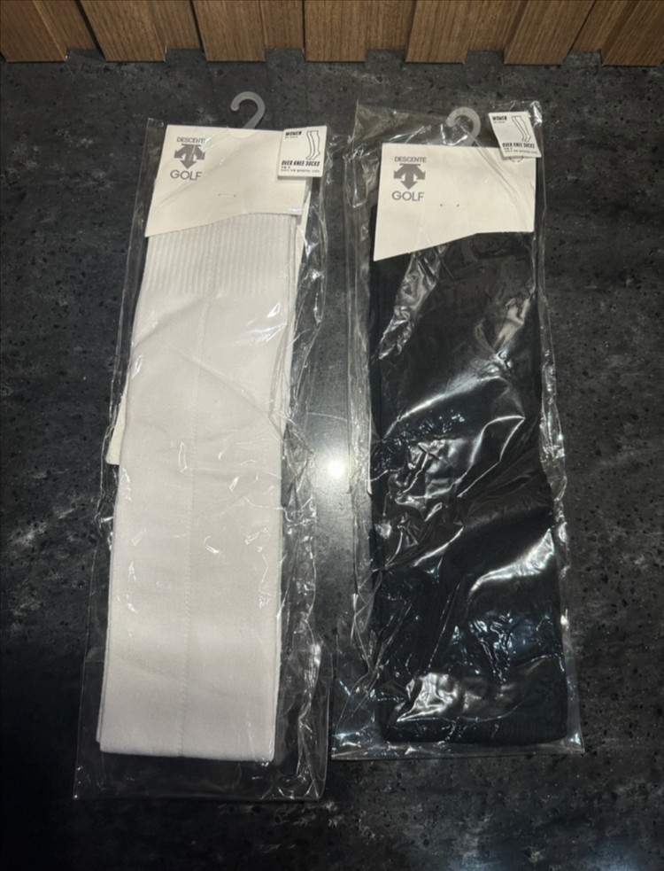 데상트 골프 니삭스 검정색 새상품입니다. - 브랜드: 데상트 - 색상: 블랙 - 정가는 개당 25,000원으로 구입했습니다. - 구매처 : https://www.musinsa.com/products/2486559 화이트 완료, 블랙 남았습니다.