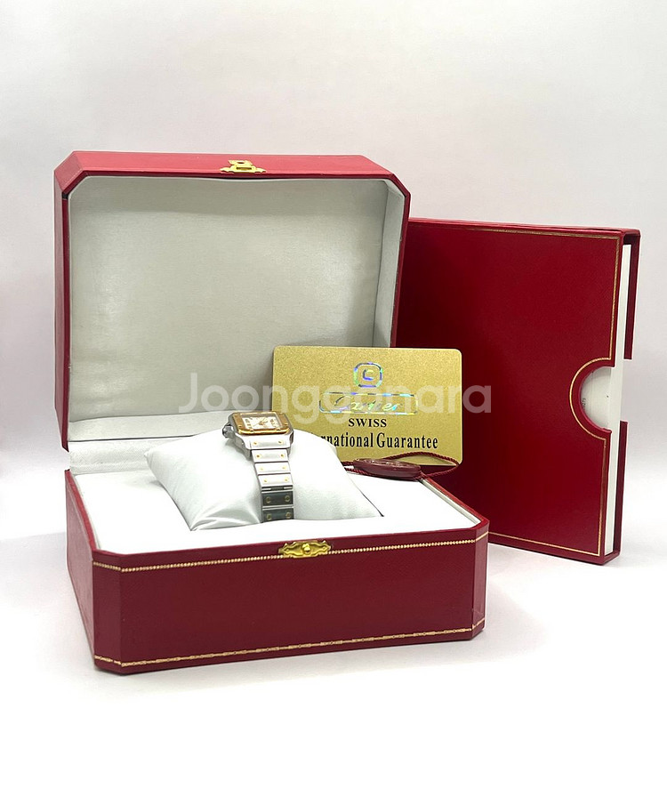 까르띠에 산토스 갈베 워치 입니다. 구성품으로는 케이스, 게런티카드, 북랫, 택이 있습니다. 사이즈는 손목둘레 16센티 이하인 분 착용가능합니다. 자연스러운 사용감 있습니다.