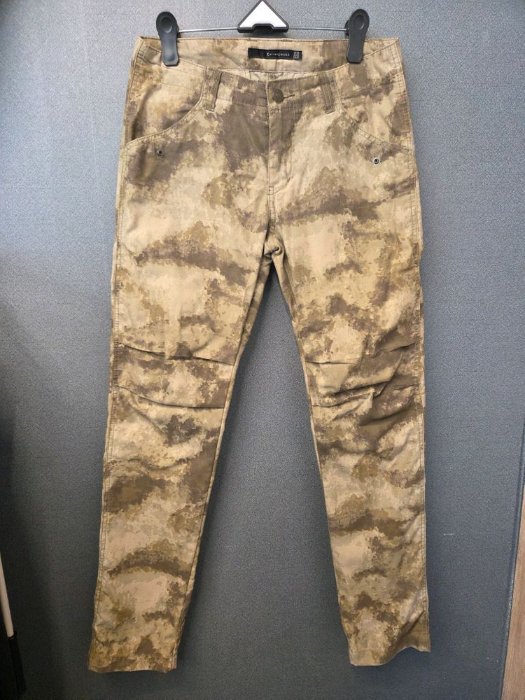 카이아크만 밀리터리 바지에요. 사이즈 30, 허리단면 38, 허벅지 29, 총장 102, 실측은 작아요. 29사이즈가 잘맞아요. 다리 라인잡아주는 슬림핏이구요. 신축성 없어요. 밀리터리 연카키색상이에요. 봄부터 여름까지 입으실수있어요. 사용감 많지않아요.