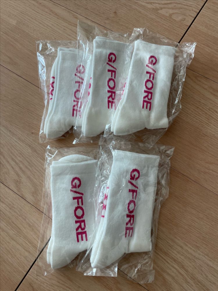 새상품 지포어 여성 양말입니다. 흰색 바탕에 핫핑크 G/FORE 로고가 포인트로 들어가 있습니다. 비닐 포장 그대로 보관하고 있습니다. 별도 문의 없으시면 바로 안전결제 부탁드려요! 하나당 가격입니다 교환 환불 불가 택배비 3000원입니다