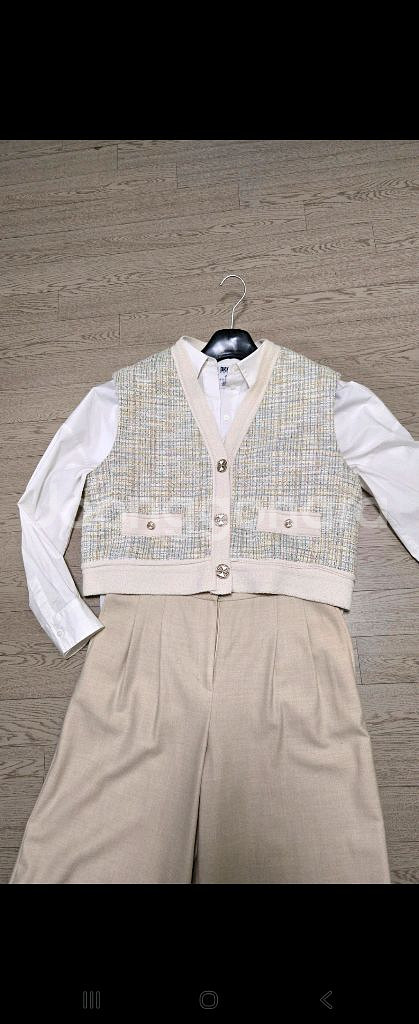 O'2nd 트위드 베스트입니다 트위드 소재로 고급스러운 느낌을 줍니다 베스트로 입으셔두 되고 여름엔 이너탑하나 입으시고 단독으로 입으셔두 이쁩니다 구입후 딱한번 입었구 상태 너무 좋습니다 현대 아울렛에서 23만원정도 주고 구입했습니다 사이즈 미스로 벼룩합니다 봄 여름 잘입으실거예요