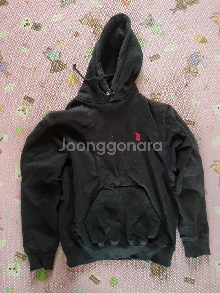 블랙 기모 후드티입니다. 공용. 사이즈는 M(87mm)이고 상태 양호해요. 깔끔한 디자인으로 데일리 착용하기 좋습니다.