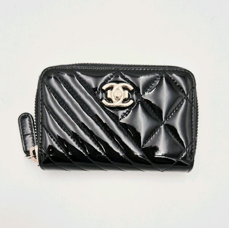 [중고명품셀렉트]샤넬 페이던트 퀼팅 지퍼돌이 카드지갑 샤넬의 아이코닉한 퀼팅 디테일이 돋보이는 지퍼 카드지갑입니다. 광택감이 매력적인 블랙 페이던트 레더 소재로, 빛에 따라 입체감이 살아나는 디자인입니다. 전면 실버톤 CC 로고 장식이 포인트이며, 라운드 지퍼 타입으로 카드 및 동전 수납이 가능해 실용성이 뛰어난 모델입니다. ✔ 소재: 페이던트 레더 ✔ 컬러: 블랙 ✔ 하드웨어: 실버톤 ✔ 제조국: Spain ✔ 시리얼: 22번대 8자리(2017년) ✔ 수납: 카드 슬롯 3 구성품: 단품, 한국명품감정협회 감정서,케이스,북렛 ✔ 상품등급: A 바디: 잔스크래치, 자연스러운 사용감 내부: 자연스러운 사용감 코너: 양호