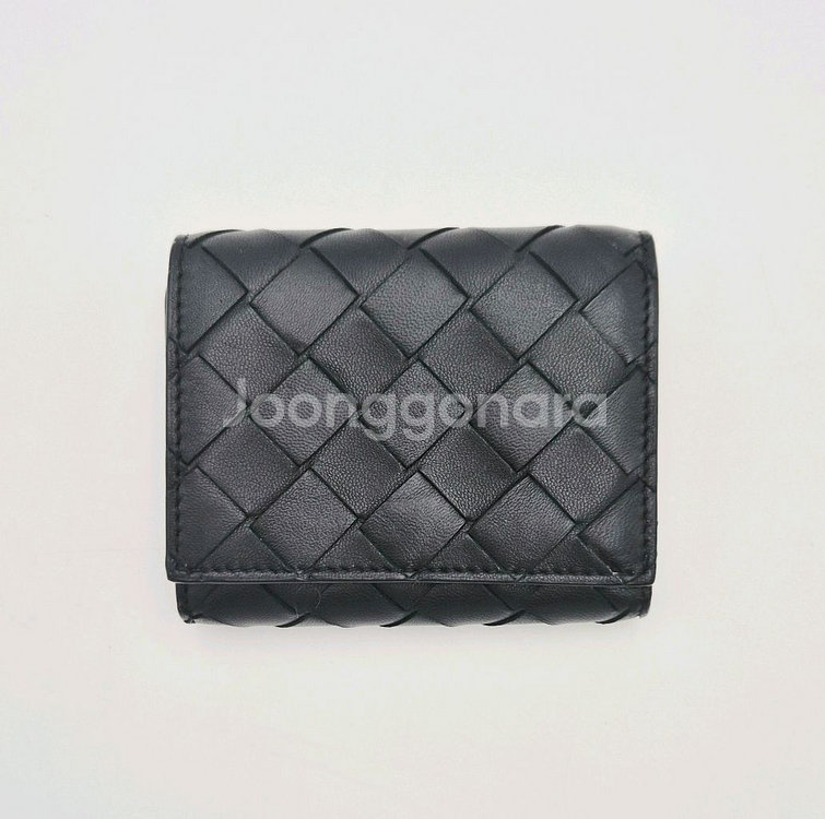 [중고명품셀렉트]보테가베네타 인트레치아토 3단 반지갑 블랙 금장 지퍼 지갑 브랜드 : 보테가 베네타 (Bottega Veneta) 원산지 : Made in Italy 컬러 : 블랙 소재 : 램스킨 (인트레치아토 위빙) 구성 : 3단 스냅형 + 지퍼 동전 수납 ✔ 시그니처 인트레치아토 위빙 디자인 ✔ 고급스러운 블랙 컬러 + 골드톤 지퍼 ✔ 스냅 버튼 클로징 ✔ 내부 카드 슬롯 다수 구성 ✔ 지퍼형 동전 포켓 포함 ✔ 콤팩트한 사이즈로 데일리 사용에 적합 사이즈: 10 * 8.5 * 2.5 CM 구성품: 단품, 한국명품감정협회 감정서 상품등급: A 전체적으로 깨끗하고 양호한 컨디션입니다. 미세 잔주름, 자연스러운 사용감 외 양호 내부: 미세 스크레치, 자연스러운 사용감