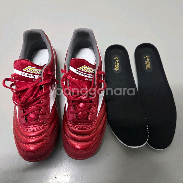 미즈노 살라 엘리트 40주년 레드 색상 신형 275사이즈 미즈노 에너지 쿠션 적용 캥거루 가죽 사용 제품으로 발이 편합니다 사이즈 미스로 1회 착용 (30분 미만 착용했습니다) 깔창도 다른거 써서 새것에 가깝습니다 미즈노 모렐리아 프로 275 착용 중이라 동일 사이즈로 샀는데 발등발가락 부분이 살짝 더 높은지 크게 느껴집니다 아래 적힌 평소 신는 풋살화보다 살짝 큰듯요 운동화 보통 270 나이키 프리미어3 275 미즈노 모렐리아2 프로 as 275 아디다스 프레데터 275 푸마 킹탑 275 사이즈 참고하십시요