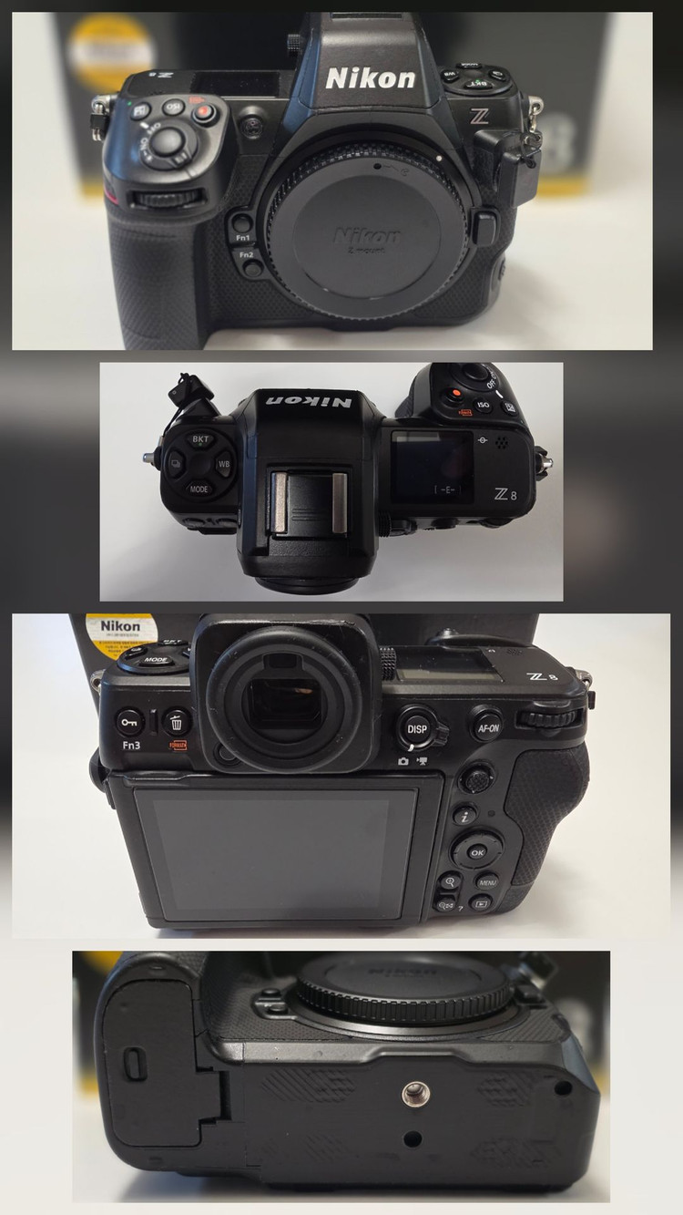 Nikon Z8 보증기간 26년 11월까지 남아있고 구입하자마자 스킨이랑 액정보호필름 붙여서 사용해서 외관은 새제품처럼 사용 가능할것 같습니다. 컷수 1만3천컷 정도 수준이고 박스 등 구성품 풀셋입니다. (배터리외 내장품 미사용 / 배터리 열화도 0%) Z8 전용 외장 GPS / 팔캠 풀케이지 포함입니다.
