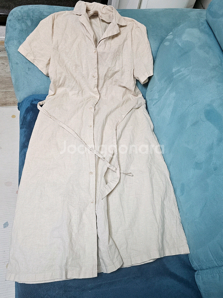 린넨 소재의 셔츠 원피스예요. 베이지 컬러로 깔끔하고 여름에 시원하게 입기 좋습니다. 전체적으로 상태 양호한 중고 제품입니다.
