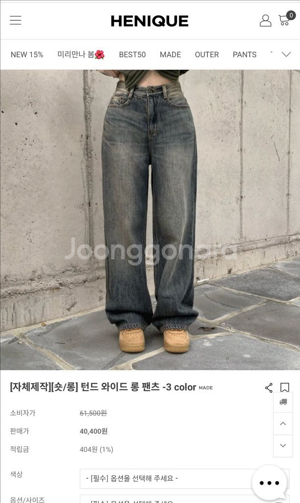 히니크 워싱 와이드 데님 팬츠입니다 워싱 컬러가 매력적이며, 와이드 핏 하이웨스트 바지입니다. 후들후들 부드러운 느낌에 데님팬츠입니다. 사이즈 S 허리단면 30센티 총장 102센티 택있는 새상품 홈페이지에 세일가 4만원대에 팔고있어요