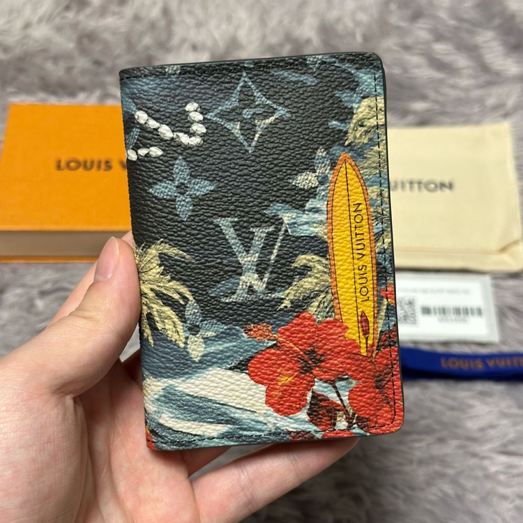 루이비통의 한정판 제품인 이클립스 서핑 슬렌더 오거나이저 카드지갑입니다. 색상은 네이비이며, 실착 3회한 제품으로 사진 보시다시피 외부 상태가 매우 좋습니다. 내부 또한 카드 슬롯의 늘어남이 없고, 모서리 까짐 일절 없습니다. 구성품 다 있습니다. 연락주세요.