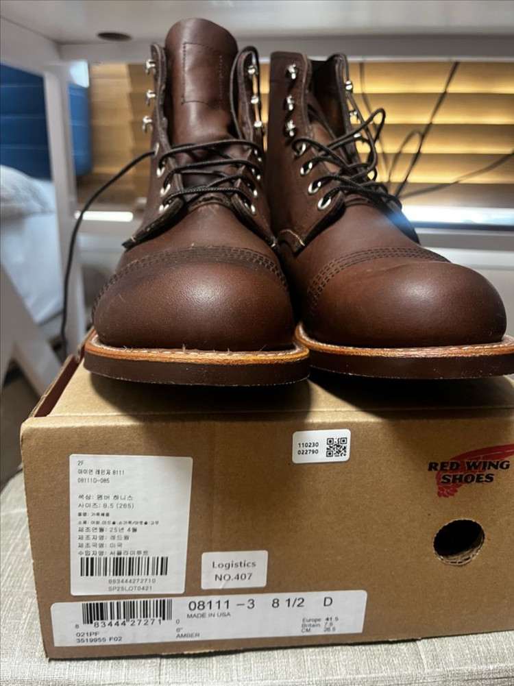 레드윙 아이언 레인저 8111D 엠버 하니스 색상 265mm 사이즈입니다. (크림구매) 새상품이고 집에서 한번 신어봤어요(외부착화X) 제가 발볼이 넓어서 업사이징을 많이 했는데 길이가 너무 많이 남아서 매물행 보내고 저는 발볼이 여유있는 EE 모델로 가보려 합니다.. 현재 서플라이루트(공식 판매처)에서 49, 크림에서도 44에 판매중입니다. 싸게 판매해서 네고는 정말 죄송합니다.
