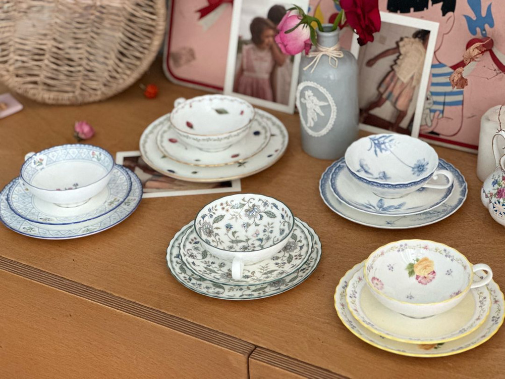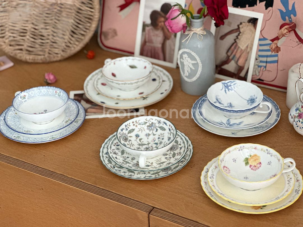 소서세트 접시포함입니다 소서세트 따로 문의 주세요 미사용 단종된 일본산들입니다 빈티지 특성상 미세한 세월감 있을수 있어요 빈티지로 실사용 목적이 아닌 디피제품개념으로 판매용도로 판매합니다 1.모닝포레스트 65900 2.칼리프팰리스 67500 3.포트쇼어 65900 4.오랑주얼리 65900 5.젠플라워 66900