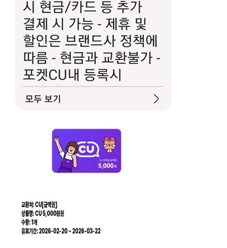 편의점에서 사용 가능한 5,000원 모바일 상품권이에요. 깨끗한 상태로 판매합니다!