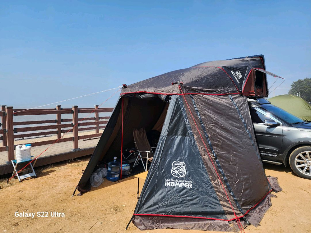 캠핑용 차박텐트로 차량에 설치해서 사용할 수 있어요. 실제 설치된 모습으로 상태 확인 가능하며, 캠핑과 차박에 최적화된 제품입니다. 이이캠퍼4인용이고 타프스크린포함520만원주고구매후4번다녀습니다 상태최상 용인아이켐퍼매장에서 구입했읍니다 지붕에 덥지말라고 특수칠도했읍니다 관심있는분 연락주셔요5345 0976