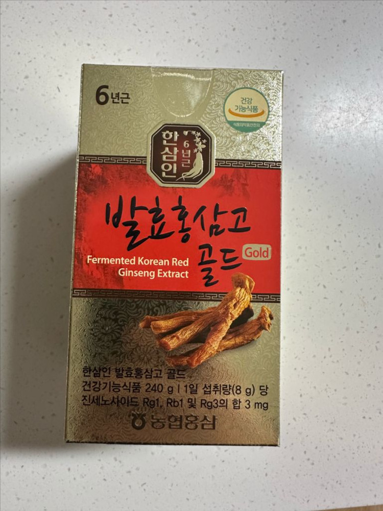 한삼인 발효홍삼고 골드 240g 1병 판매합니다. 인터넷에서 10만원 후반대에 판매되고 있는 상품입니다. 소비기한이 올해 10월까지라 싸게 판매합니다. 240g 1병이면 한달가량 먹는 분량이기 때문에 소비하는데는 문제 없을 거예요.