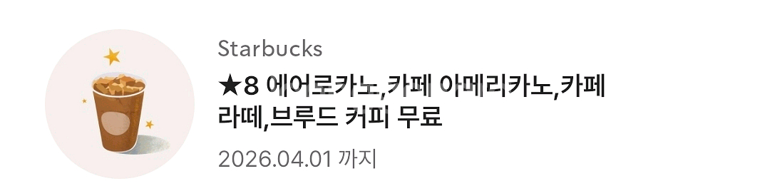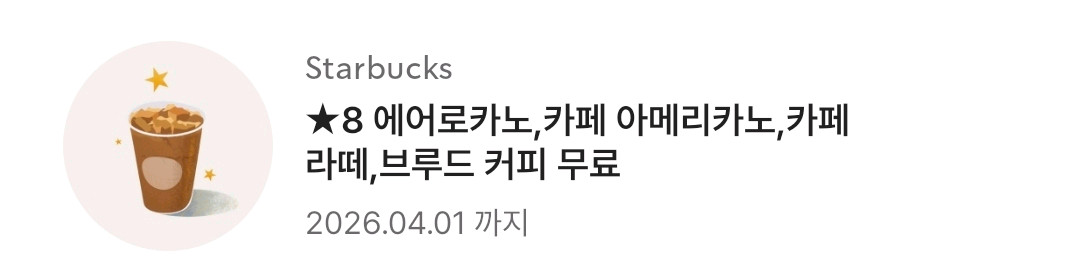 스타벅스 카페라떼, 카페아메리카노 음료쿠폰 판매합니다. 사용기한: 26.04.01. 가격: 3,800원