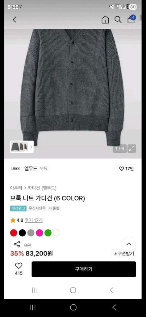 개인정보(거래정보)를 주고받는 행위는 사기에 노출될 수 있으므로 즉시 중고나라로 신고해 주세요셀프검수검수일 26.03.06브랜드엘무드상품상태사용감 적음사이즈(기본) M정가83,200원사이즈 설명ㅁ색상멜란지구매처무신사구매시기2025.10.23보관만 하고 있습니다