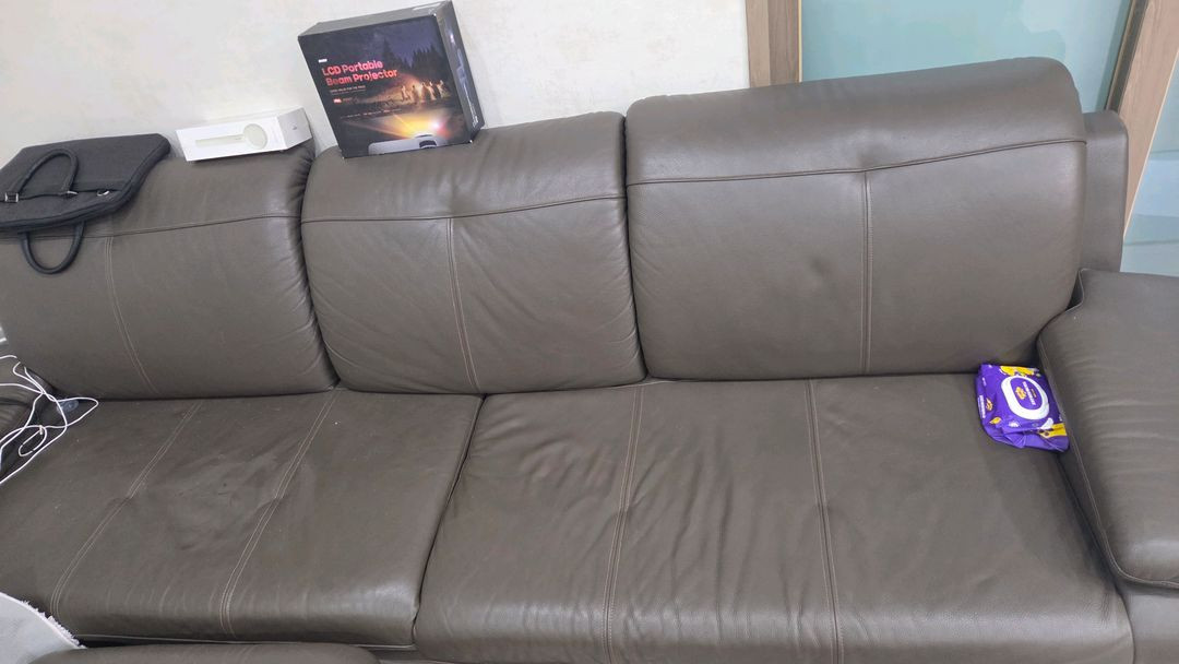 자코모(JAKOMO) 가죽 소파입니다 - 색상: 그레이에 가까운 진한 브라운 톤 - 구성: 좌방석 3칸(확장형 4인에 가까운 구성), 팔걸이, 다리 포함, 스툴1개 포함 - 상태: 사진과 같이 전체적으로 사용감 있으며 좌방석 눌림 자국 있음 -한쪽만 않았더니 그쪽만 보강대가 조금내려않았습니다(as얼마안함 감안하여팜) 6년정도 사용 -엘베있고 직접가져가는 조건입니다 - 대략 사이즈 300 X 100 입니다