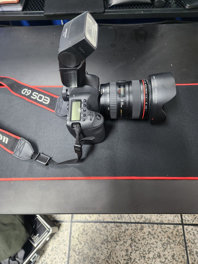 풀프레임 DSLR 카메라와 렌즈가 함께 구성된 세트입니다. 플래시도 포함되어 있고 전체적으로 사용감은 있지만 작동에는 문제없는 상태예요. 사진 촬영에 바로 사용 가능한 완전한 구성입니다. 사용횟수 : 거의 없습니다 상태 : 매우 양호 합니다 연락처 : 010-9289-5921 택배 가능하고 직거래은 경기 성남시 분당구, 용인시 수지구, 수원 영통구 가능합니다.