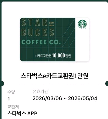 스타벅스 e카드 교환권 1만원