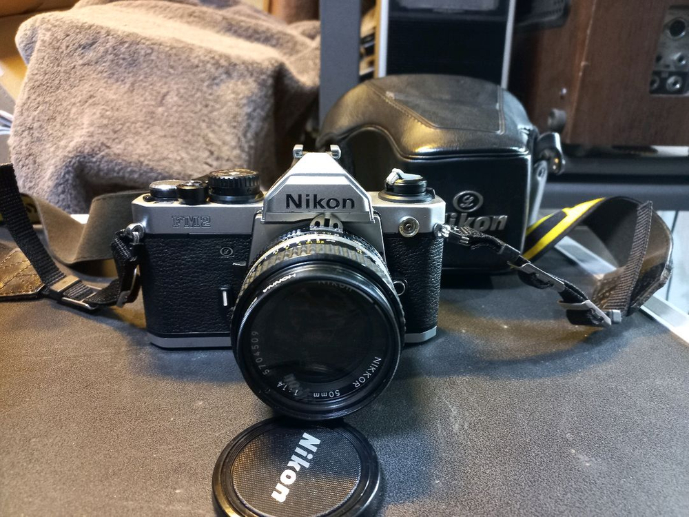 니콘FM2 실버 바디 와 50mm1:1.4 렌즈 바디 외관은 보이는 큰기스 없으 전체적으로 깨끗한 상태 입니다 기능이나 노출등 문제없이 작동 잘되고 있어요 파인더 및 내부도 깨끗한 상태입니다 단 셔터막 한쪽 막 자세히 보면 약간에 구김 있습니다 확대 사진 참고 해주세요 작동에 문제는 없습니다. 악세사리는 어깨끈 렌즈캡 필터 케이스 있습니다