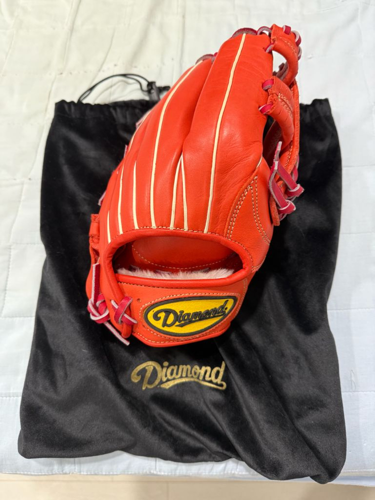 다이아몬드 ix3-1005 내야용 야구글러브입니다. 오렌지컬러 조합이 멋스럽고 거의 사용하지 않아 상태도 양호해요. 전용 파우치도 함께 드려요!