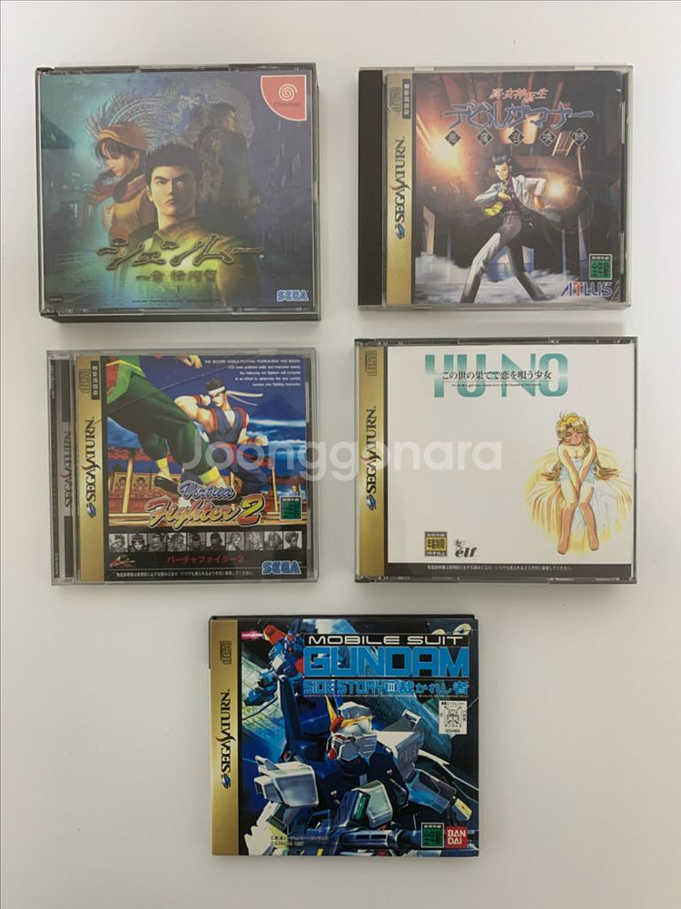 세가새턴, 드림캐스트 게임 모음입니다. 새턴 버추어파이터2 진여신전생 데빌사마나 YuNo 기동전사건담외전3 쉔무 전체적으로 케이스 설명서 cd에 기스 있습니다 진여신전생은 기스 좀 많으나 플레이됩니다 Yuno는 disc3과설명서 없습니다 플레이용 중고입니다 문의 없으시면 바로 안전결제해주시면 됩니다!