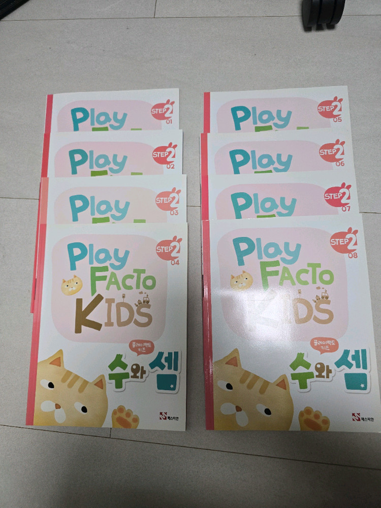 플레이팩토 키즈 STEP2 수와셈 8권 - 아이들의 수학적 사고력과 문제 해결 능력 향상에 도움을 줍니다 - 다양한 그림과 게임을 통해 쉽고 재미있게 수학을 배울 수 있습니다 - 수와 연산 능력을 키울 수 있습니다 1,2권은 좀 사용했고, 3권부터는 새책입니다^^