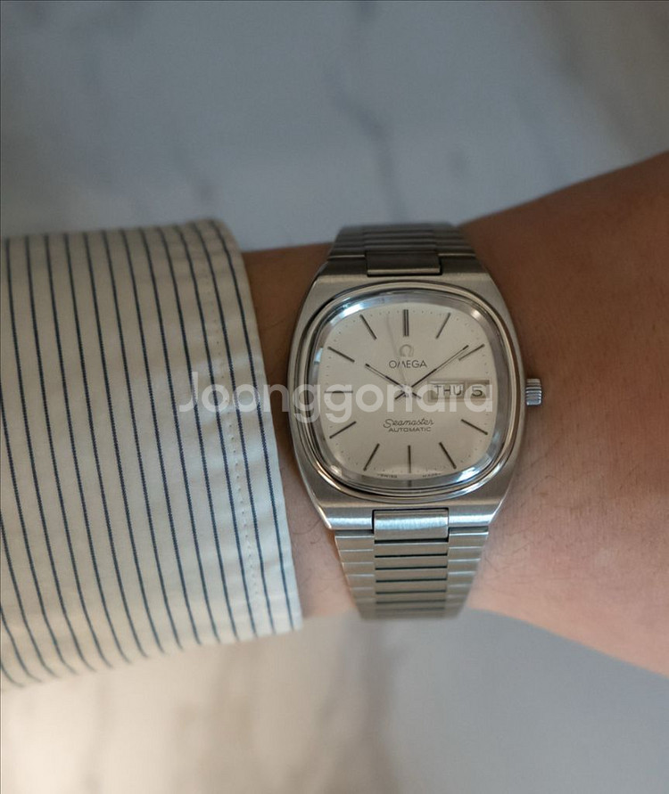 🔹 기본 정보 • 브랜드: 오메가 • 모델명: 씨마스터 테레비 (TV Dial) • 무브먼트: 오토매틱 • 기능: 데이데이트 (요일 / 날짜) • 케이스: 스테인리스 스틸 • 다이얼: 실버 다이얼 • 브레이슬릿: 스틸 일체형 브레이슬릿 • 시대: 1970,80년대 빈티지 ⸻ 🔹 모델 설명 1970,80년대 빈티지 오메가에서 볼 수 있는 독특한 디자인의 “테레비(TV Dial)” 케이스 씨마스터입니다. 케이스 형태가 당시 텔레비전 화면과 닮았다고 해서 TV 다이얼 또는 테레비 케이스라고 불리는 모델로, 빈티지 오메가 중에서도 디자인적인 개성이 강한 모델입니다. 또한 해당 모델은 • 요일 + 날짜가 함께 표시되는 데이데이트 기능 • 씨마스터 자동 무브먼트 • 빈티지 감성이 강한 테레비 케이스 이 조합으로 실사용과 컬렉션 모두 가능한 모델입니다. 특히 사진처럼 케이스와 브레이슬릿이 이어지는 70,80년대 일체형 디자인은 빈티지 시계 특유의 분위기를 좋아하시는 분들에게 꾸준히 인기가 있는 스타일입니다. ⸻ 🔹 거래 조건 • 경기도 구리 직거래 / 택배거래 / 퀵거래 • 네고 문의 받지 않습니다