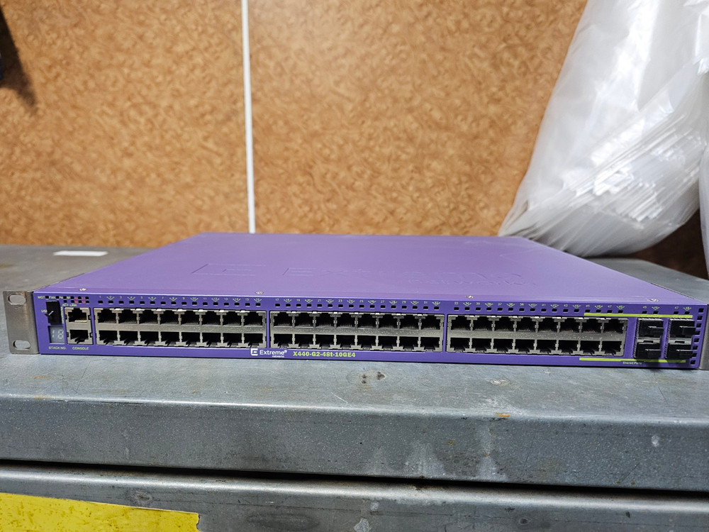 Extreme X440-G2-48t- 10GE4 48포트 네트워크 스위치입니다. 사용감은 있지만 정상 작동하는 중고 제품이에요. 네트워크 확장이나 업그레이드용으로 좋습니다.