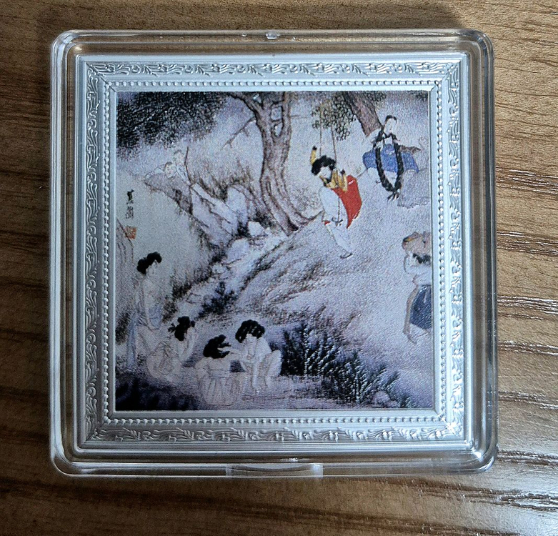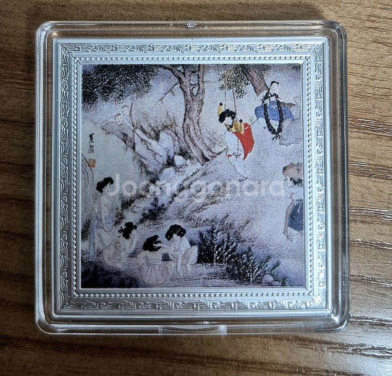 신윤복의 단오풍정 워낙 유명한 작품이죠 설명 생략하겠습니다 전세계 500개 한정판이고 뒤에는 고급푸르프처리 되있습니다 1온스 99.9 순은화 케이스 보증서 풀구성입니다 직거래 강남 신사역 8번출구 택배거래 +3500원