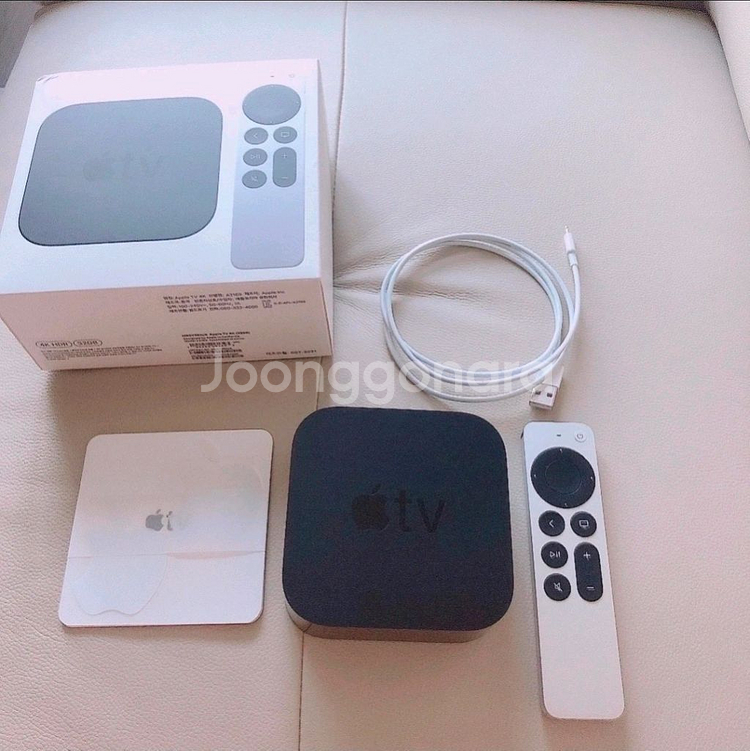 애플티비 Apple TV 4K (32GB) A2169 구성품은 애플TV 4K 본체 A2169 (사용감은 있음) 정품 시리 리모트 리모컨(리모컨 전원버튼이 자꾸 빠짐) 수리 받으시거나 쿠팡에서 구매하시면 됩니다 라이트닝-USB 충전 케이블 사용 설명서 , 애플스티커 제품박스 작동잘되는 제품 제품은 초기화 시켜 놓았습니다