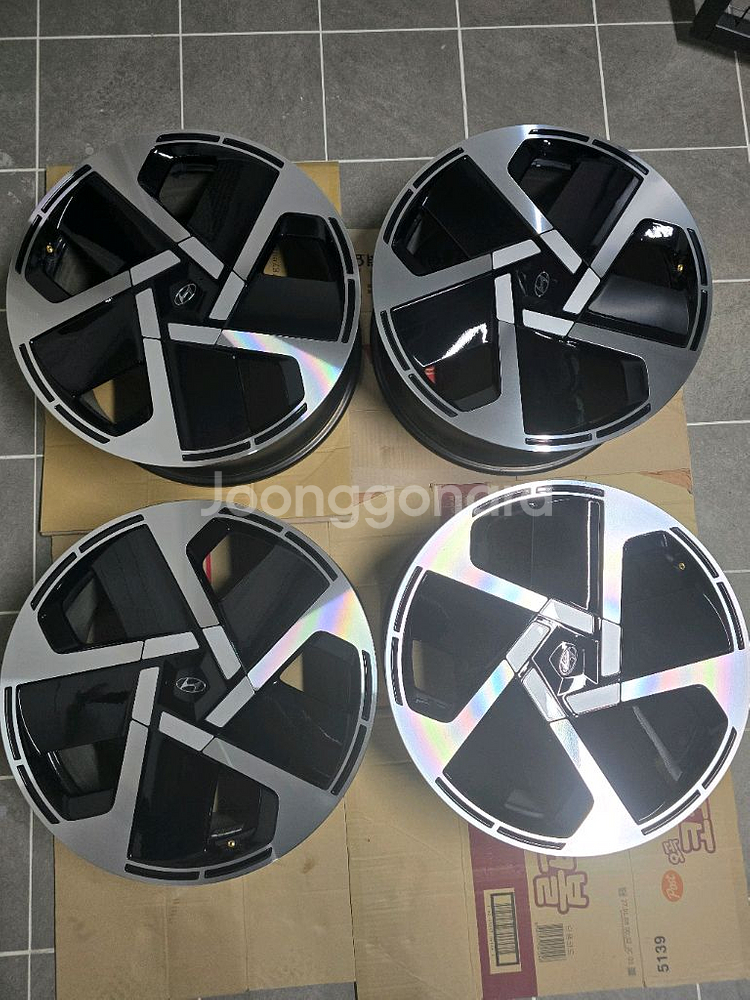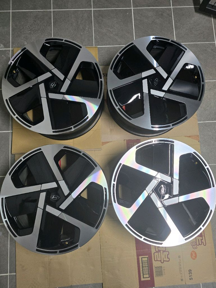 아이오닉9 21인치 프레스티지 순정 휠 한대분(4짝) 판매 합니다. 금액 65에서 55로 내립니다. 주행거리 4230km에 탈착했습니다. 상세 사진 올립니다. 상태 신품대비 95%이상 입니다. 특이사항이 없어요. 사유는 마차휠로 변경하게 되어 판매합니다. 직거래만 가능합니다. 실을 수 있는 차량으로 오셔야 해요.. 검단신도시 직거래 판매입니다. 010-9722-2336