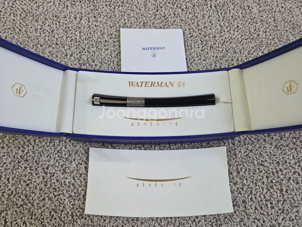 곡선형 디자인으로 유명한 세레니떼 만년필입니다. 워터맨의 최상급 모델이었으나 현재는 단종입니다. 비대칭과 곡선의 조합이 아주 매력적인 펜입니다. 클립과 밴드는 스털링실버 소재입니다. 디핑 테스트만 진행했습니다. 큰 하자는 없으나 헤어기스 정도는 있는 편입니다. 모든 구성품 포함한 풀세트입니다. 판매 가격은 135만원입니다. 직거래(경기 평택) 안전거래 모두 가능합니다. 문자나 채팅으로 연락주시면 감사하겠습니다. olo 육4e4 육e7육