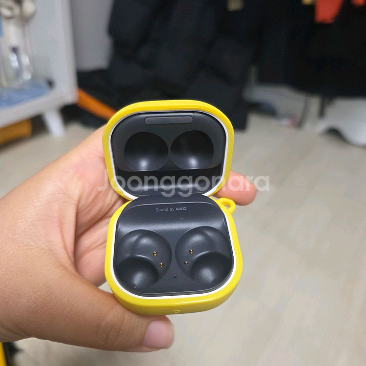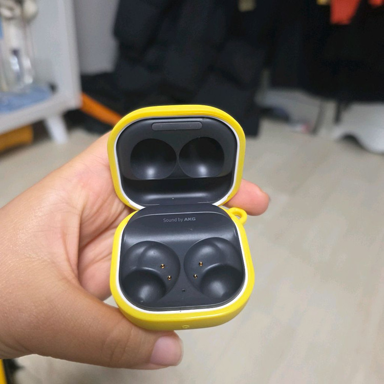 갤럭시 버즈 2 흰색 케이스 껴서 노란색 별 문제는 없고 전원도 잘 들어옵니다
