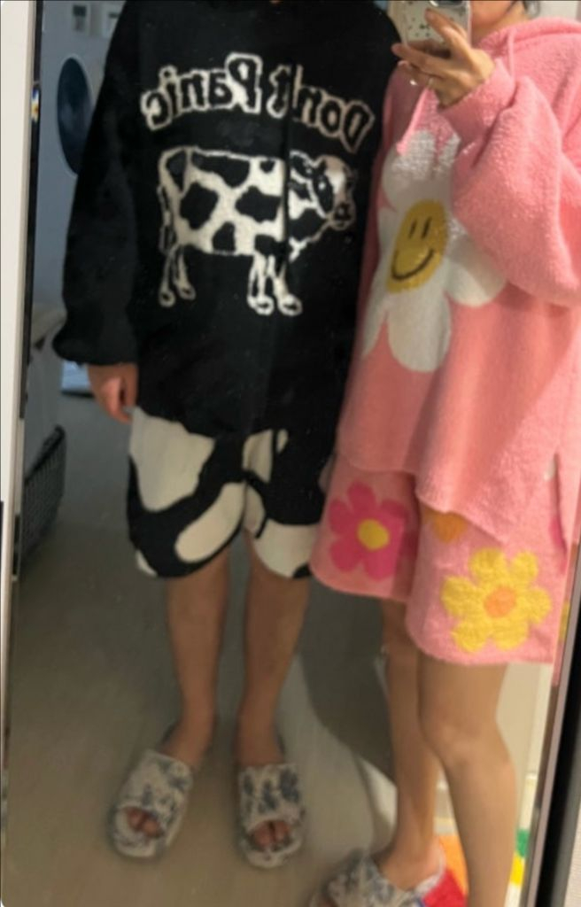 후드티랑 반바지 셋트로 구성된 수면재질로 되어있는 셋업 입니다~ 미사용 제품이라서 상태 좋습니다. 문의 없으시면 바로 안전결제해주시면 됩니다! 남녀공용으로 사이즈 넉넉하게 나왔고 남자분들입기에도 편해요~