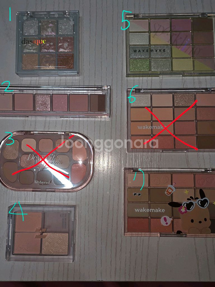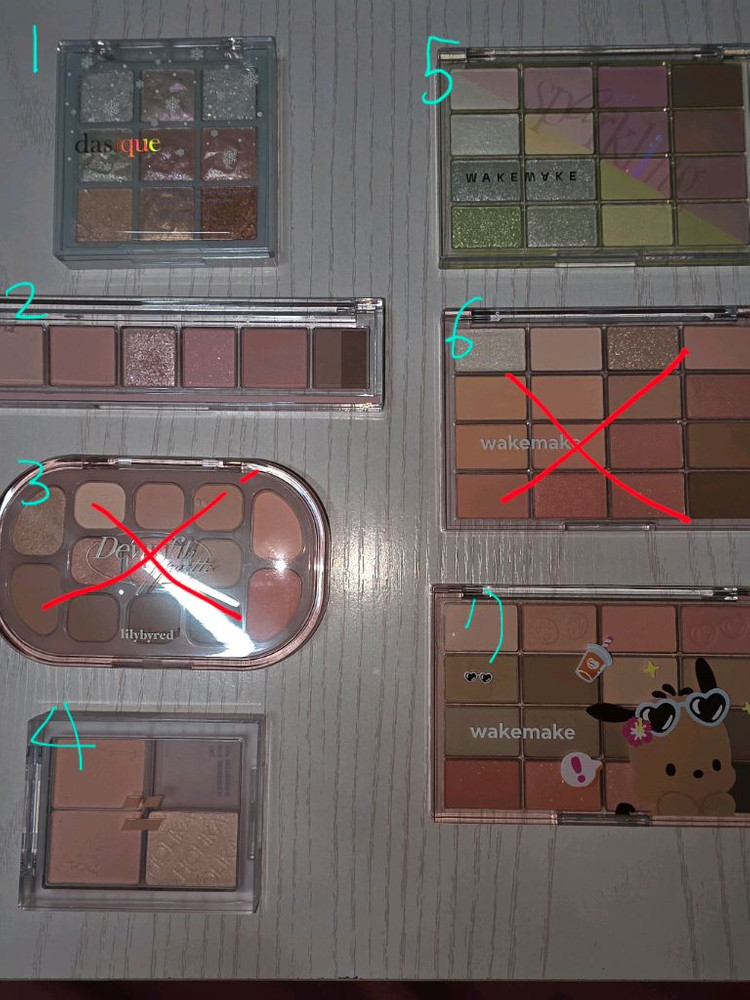 코덕이라 신상나오면 사놓고 까먹고 안쓰거나 궁금해서 1가지 색 1ㅡ2회 발색한게 전부입니다 외관도 깨끗합니다 집이 어두워서 후레쉬키고 찍었어요 궁금한건 챗주세요 급처라 최대로 할인중이고 상태 다 좋아요 당x마켓에서도 판매중이라 금방 품절될 수 있습니다 네고는 어렵습니다 교환, 환불 불가합니다 1ㅡ데이지크 섀도우팔레트 #25홀리데이스노우볼 26.11.16까지 1ㅡ2회 발색 (7천원) 2ㅡ페리페라 올테이크무드팔레트 02봄과여름의서사 27.05.13까지 1회 발색 (1만원) 3ㅡ릴리바이레드듀이핏팔레트 01#피치크림 28.04.10까지 미사용 (1만원) 판매완 4ㅡ홀리카홀리카 마이페이브피스아이섀도우 스트로베리밀크 27.10.30까지 미사용(1만원) 5ㅡ웨이크메이크 소프트블러링아이팔레트 17라임크러시블러링 27.02.04까지 미사용(1만원) 6ㅡ웨이크메이크 소프트플러링아이팔레트 08캔디코랄블러링 28.04.28까지 미사용(1.3만원) 판매완 7ㅡ웨이크메이크 소프트블러링아이팔레트 25헬시코랄블러링 28.05.27까지 미사용(1.3만원)