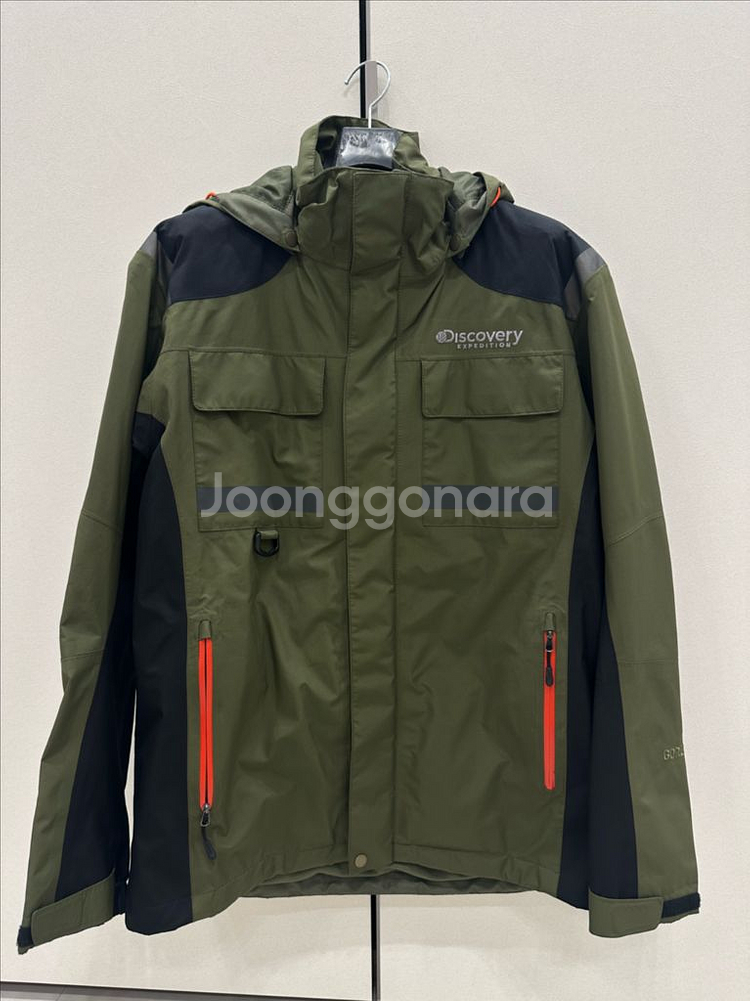 고어텍스 소재의 아웃도어 자켓이에요. 올리브그린과 네이비 배색으로 멋스럽고, 방수 기능이 뛰어난 등산용 재킷입니다. 상태 양호하고 실용적인 포켓 디자인이 매력적이에요.