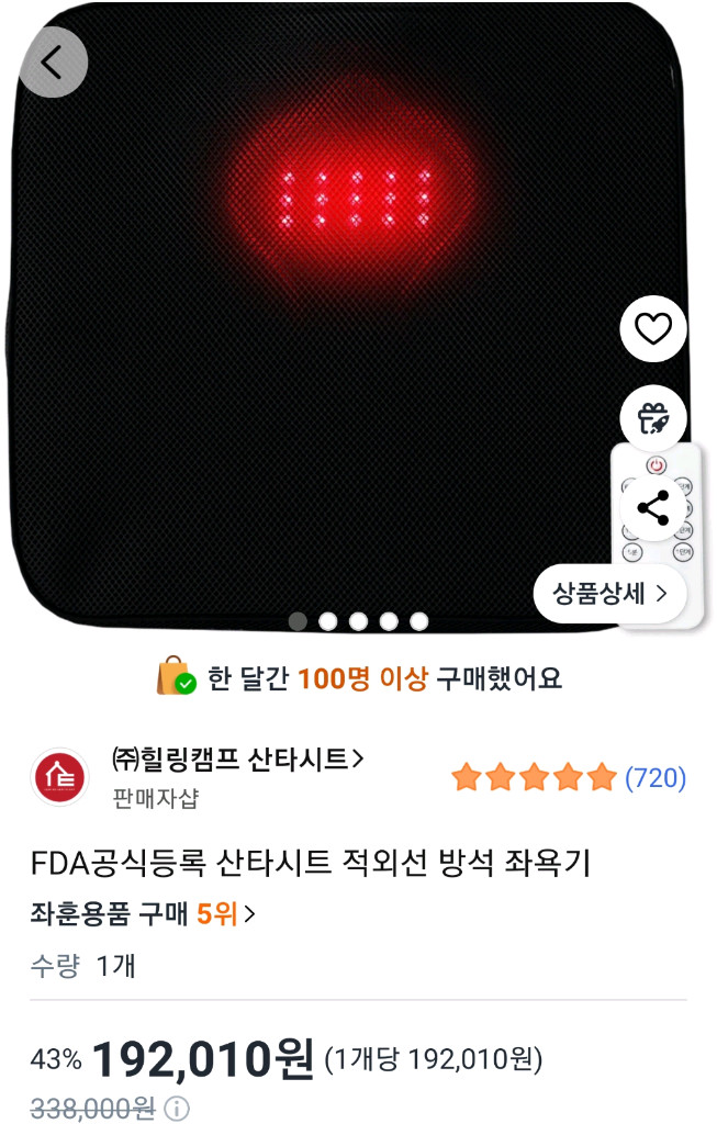 산타시트 적외선 방석 좌욕기입니다. 따뜻한 온열 기능으로 찜질 효과를 줘서 좋습니다. 평소 몸이 차가우신 분들에게 추천드려요. 구매 원하시면 바로 안전결제 해주시면 됩니다! 산타시트 적외선 방석 좌욕기예요. 단순개봉 미사용 새상품입니다 박스 풀셋입니다 바로 구매 하시면 됩니다 배송비 포함
