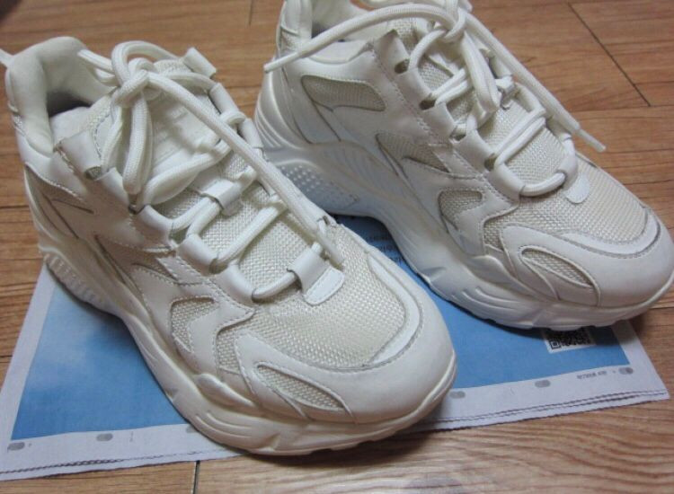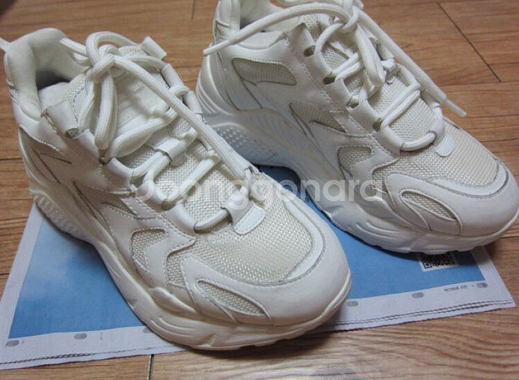 자연스러운 더티워싱 올 화이트 컬러 질바이 질슈트어트 어글리 스니커즈 36사이즈 230-235 정235 맨발에 편하게 딱 맞고, 양말 신으면 작아요 빈티지 워싱이 들어간 어글리 핏 안쪽으로 약 5cm 정도 굽이 숨어있어요 집앞에서 잠깐 신어 바닥 제외 상태 좋아요 제일 상태 좋고 예쁜 걸로 까다롭게 골랐어요 때탐 등은 원래 그런거예요 오렌지색 신발끈 새것과 박스 있어요 made in China