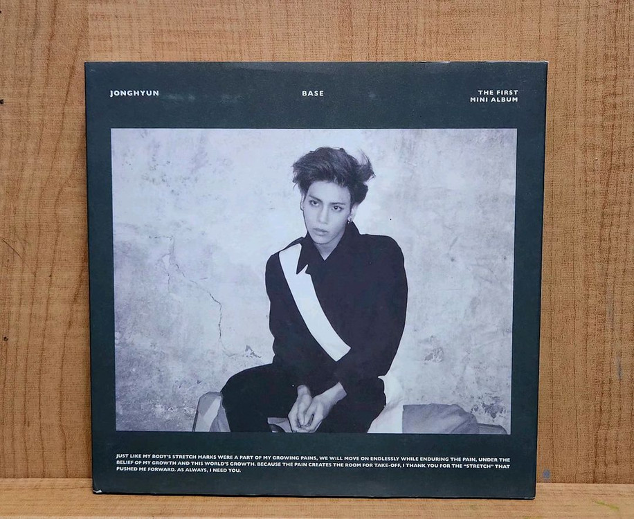 샤이니 종현의 BASE 첫 번째 미니 앨범입니다 CD와 포토카드 포함되어 있습니다 종현의 뛰어난 음악적 재능을 엿볼 수 있는 앨범입니다 댓글보다는 문자주시면 빠르게 답장 드리겠습니다 ㅇ1ㅇ 4ㅣ3ㅣ 오ㅇ오오 입니다
